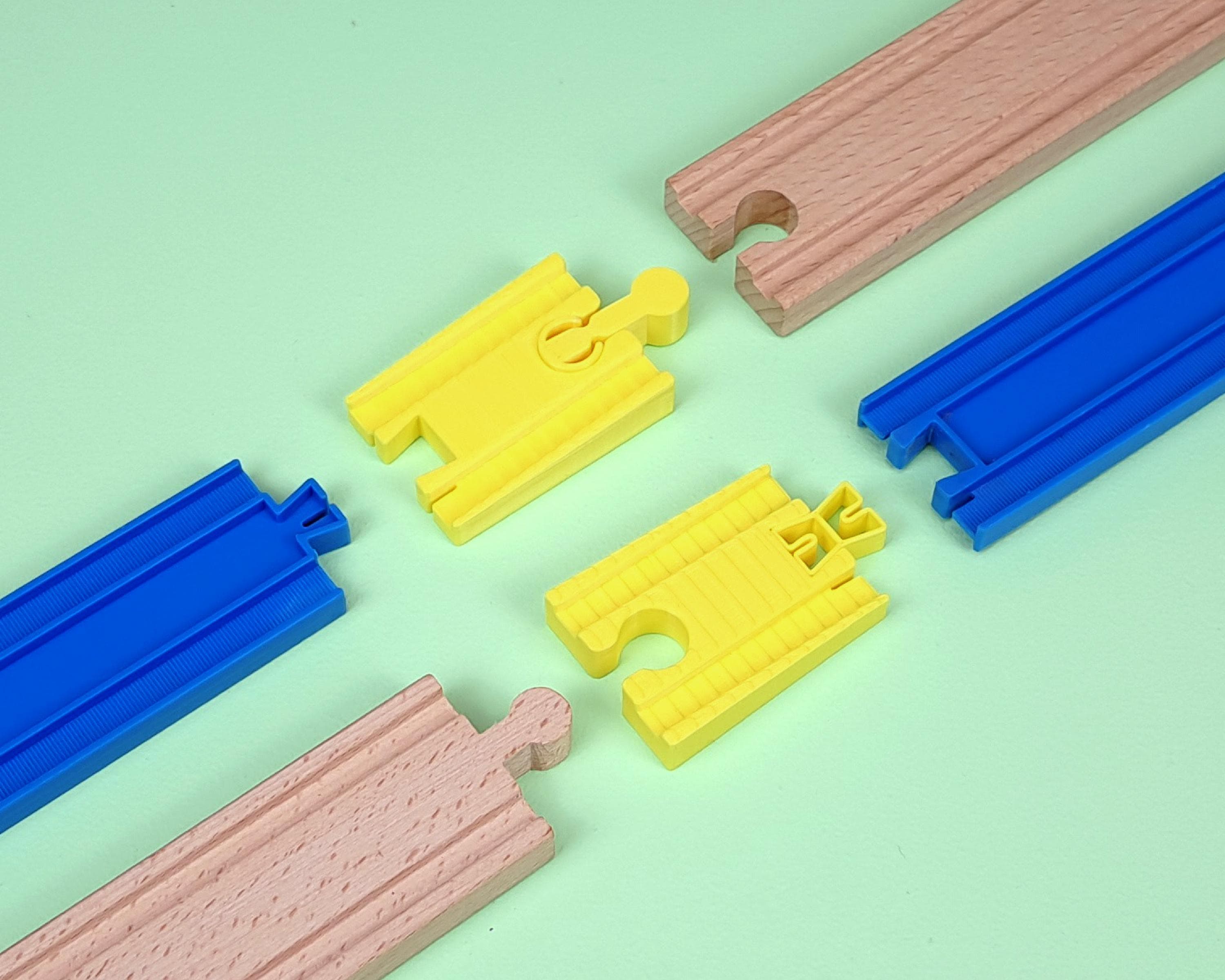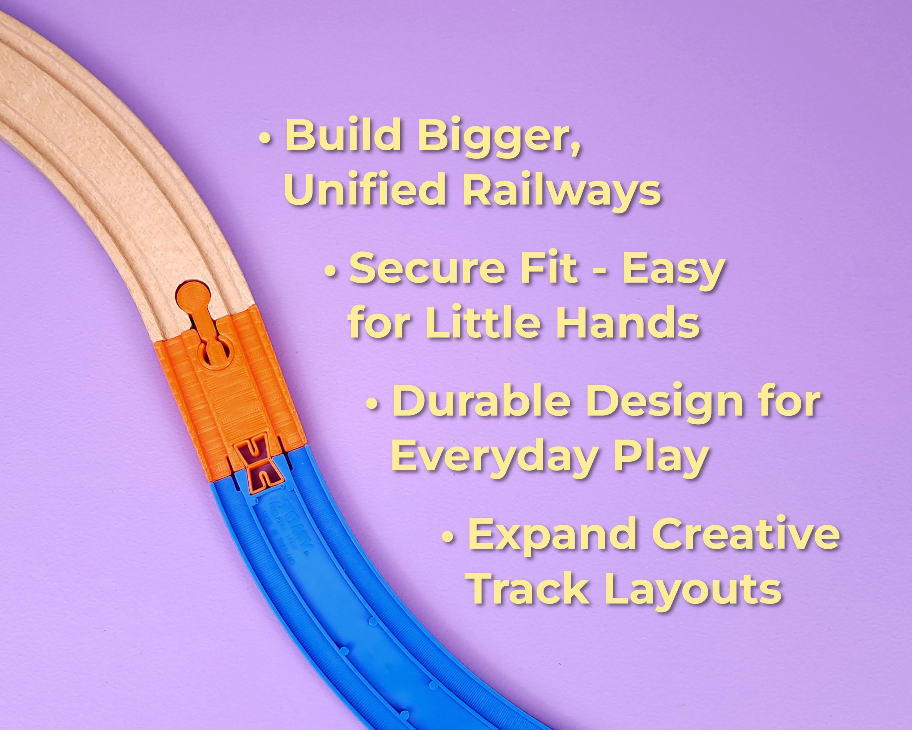 Track adapters to fit Thomas Trackmaster made from 1990's-2008. Designed to be compatible with all common brands of wooden track including BRIO, Ikea, Bigjigs and more. Available in a range of colours.