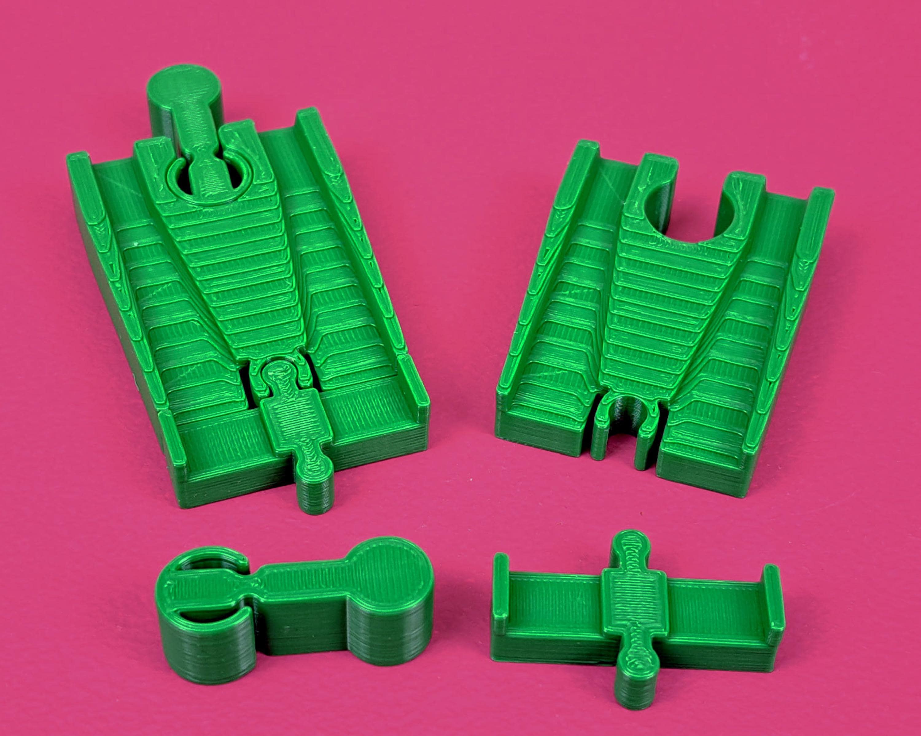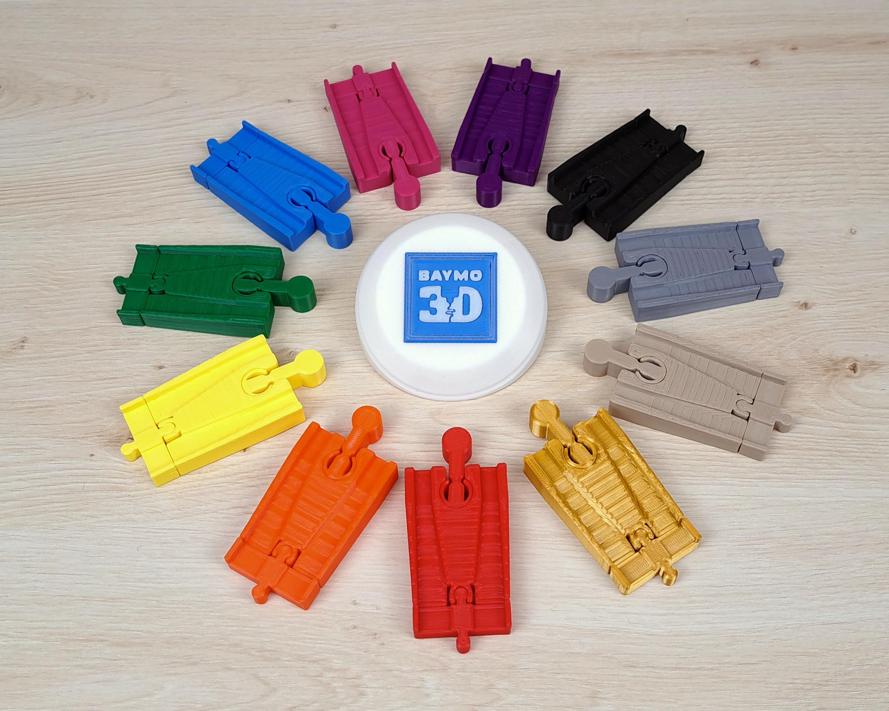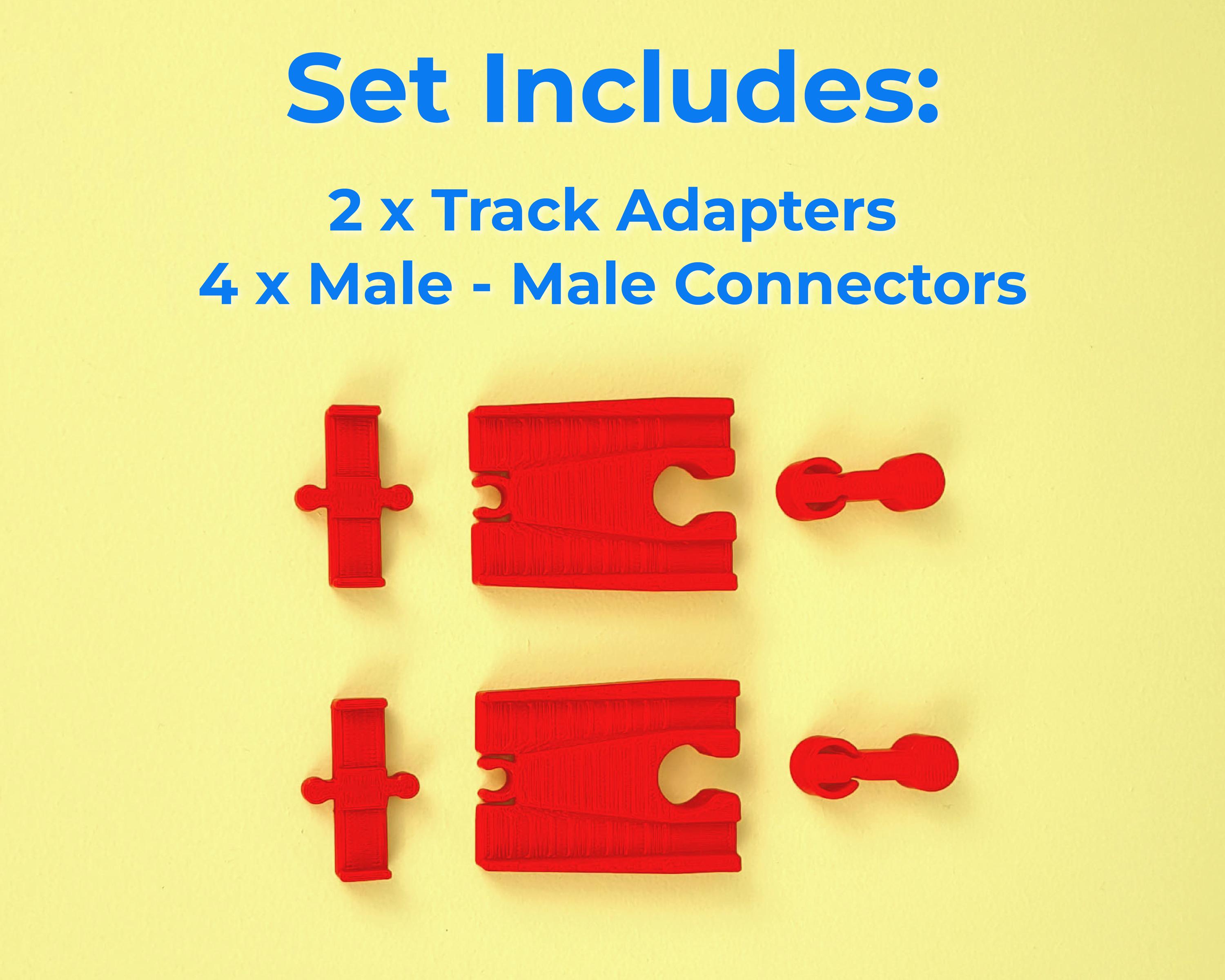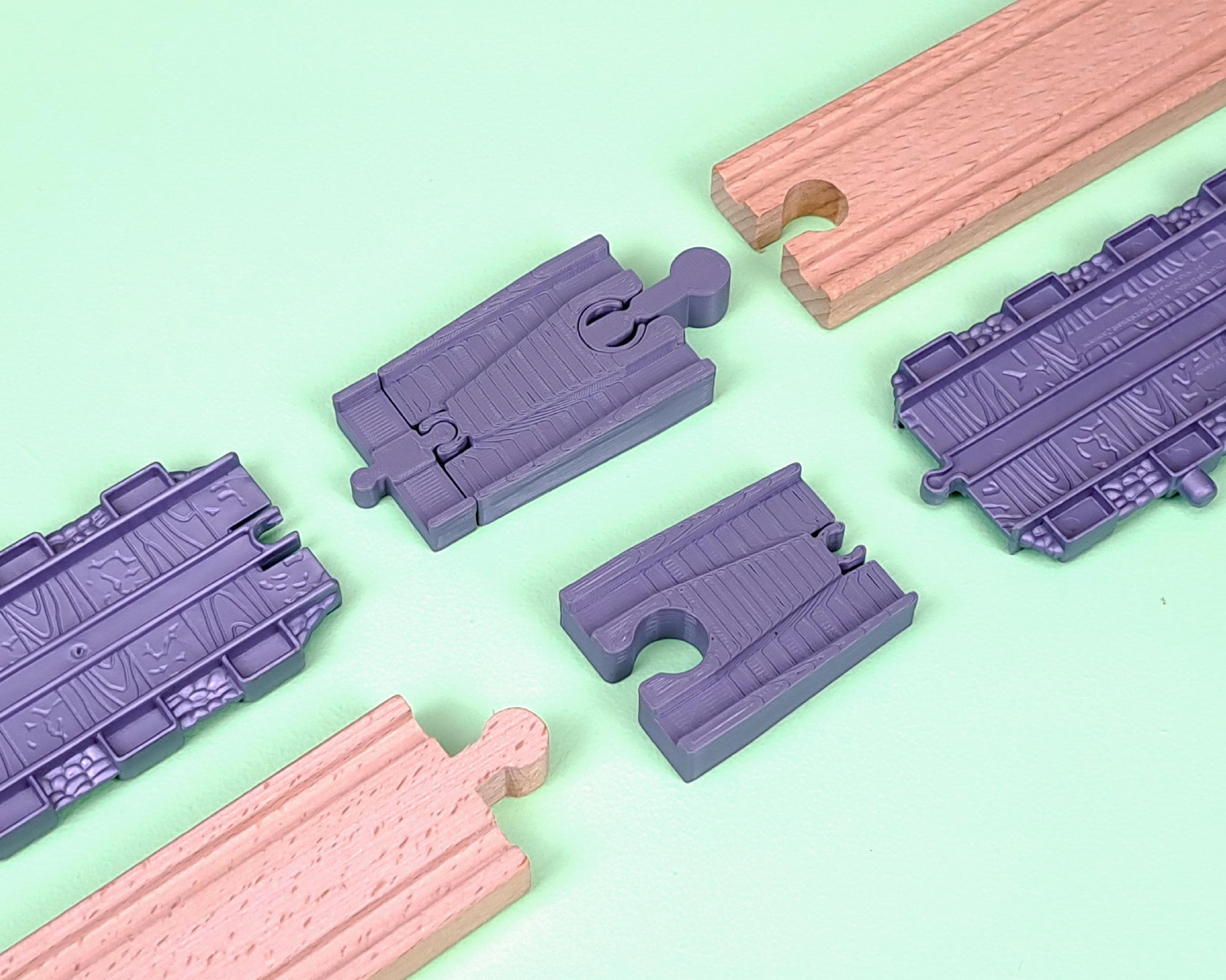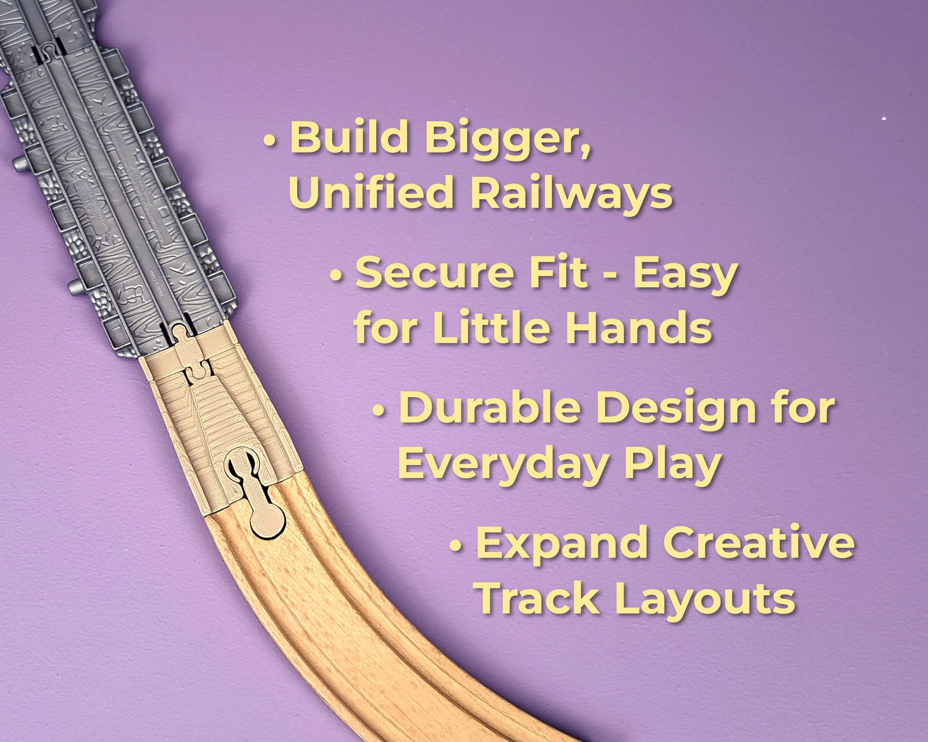 Track adapters to fit Take Along Thomas / Take-n-Play track. Designed to be compatible with all common brands of wooden track including BRIO, Ikea, Bigjigs and more.