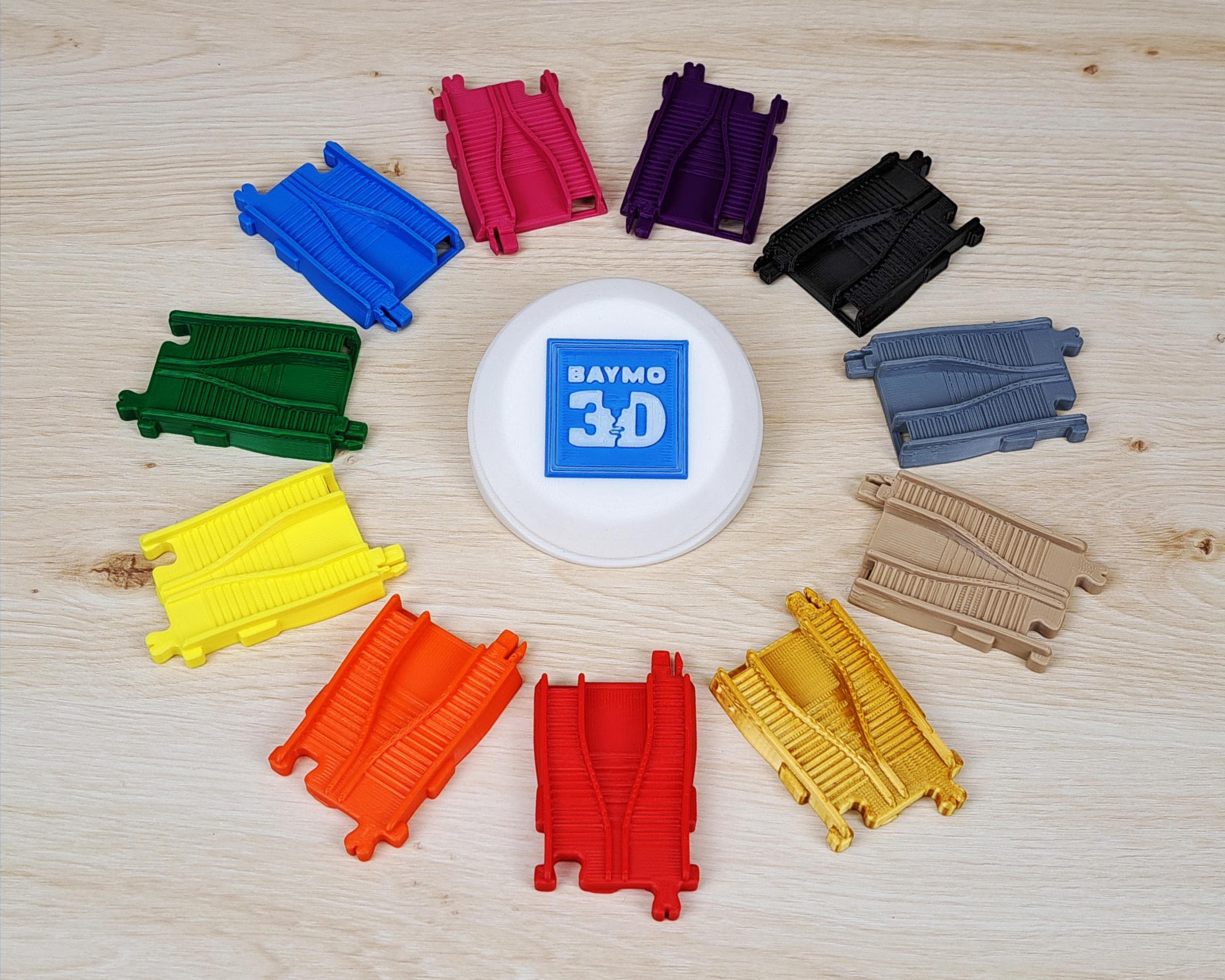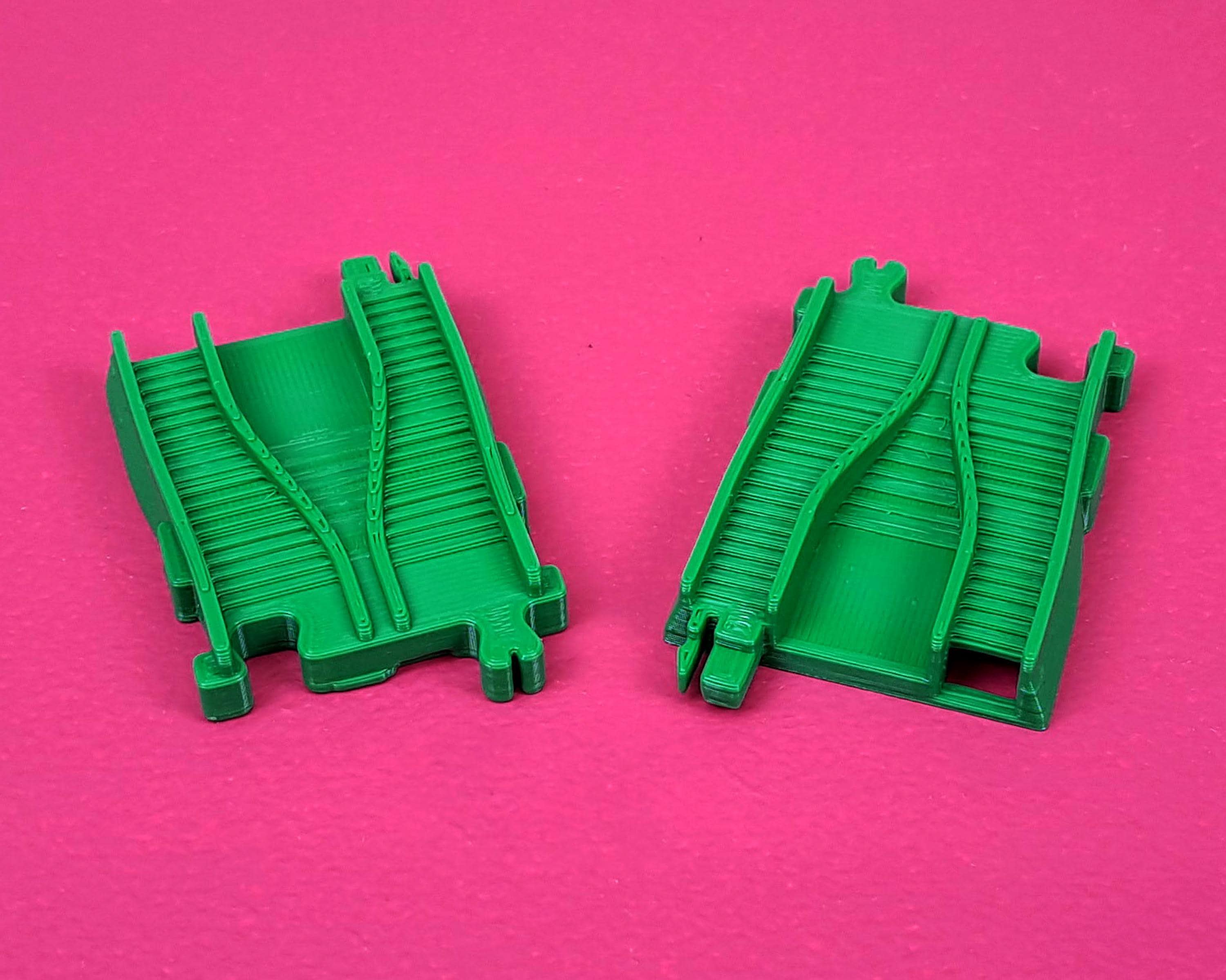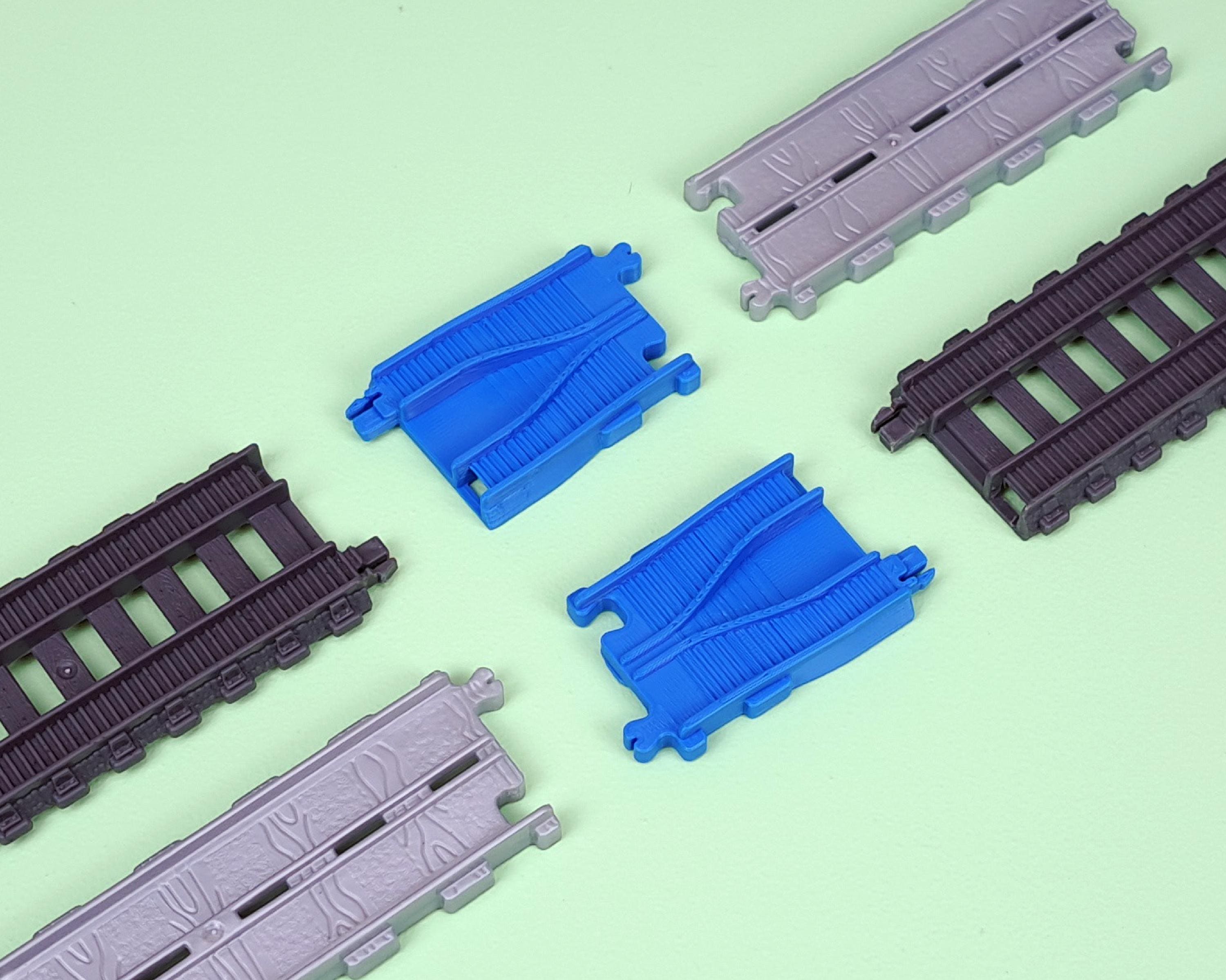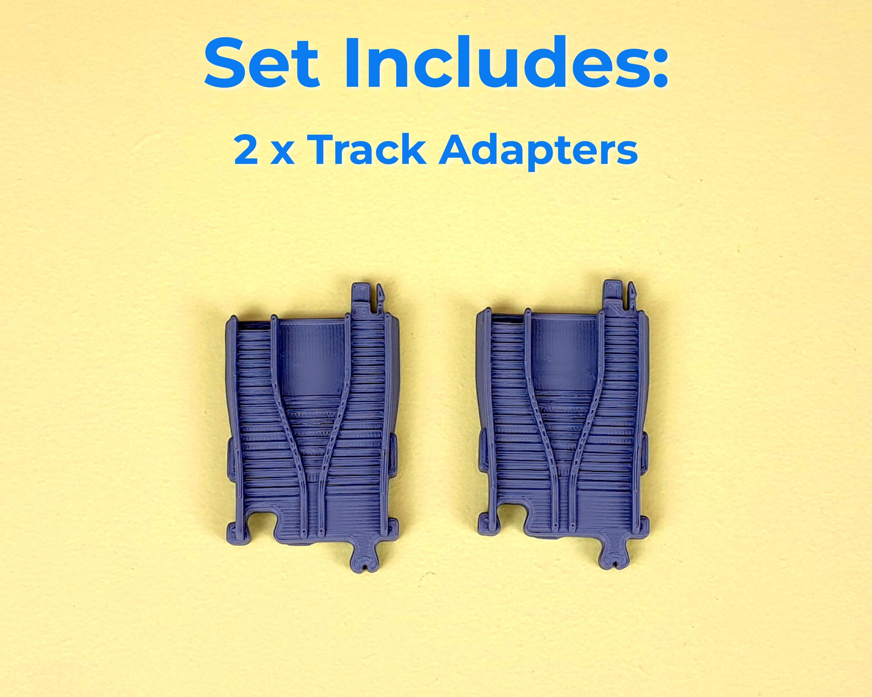 2 Track Adapters to connect the latest generation of Thomas Trackmaster to Thomas Adventures track. Perfect for creating bigger track layouts with all that old leftover track.